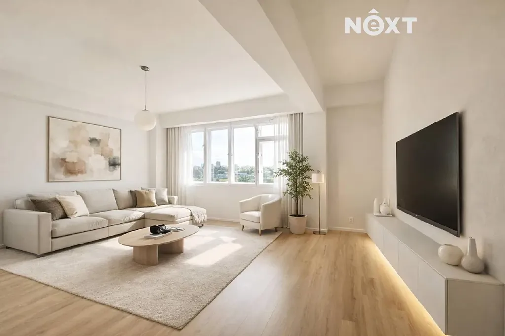 Nabízíme Vám kompletně a vkusně zrekonstruovaný, prostorný byt ve třetím patře cihlového domu s velkými okny do tří světových stran. Lokalita je klidná, s vnitroblokem, zároveň však pár kroků na tramvaj, bazén, koupaliště, fitness, OC Eden, stadion Slavie atd.