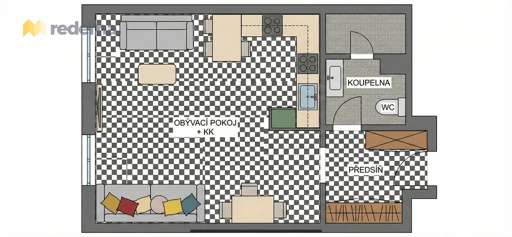 Interiér tvoří vstupní chodba s vestavěným úložným systémem, moderní koupelna a hlavní obytný prostor s kuchyňskou linkou a vestavnou myčkou. Byt je také vybaven pračkou. Součástí pronájmu je i zděná sklepní kóje a praktická komora na podlaží. Byt je situován do klidné části domu, který spravuje bezproblémové družstvo. Byt je k nastěhování od 1.4.2026 a bude vyklizen.