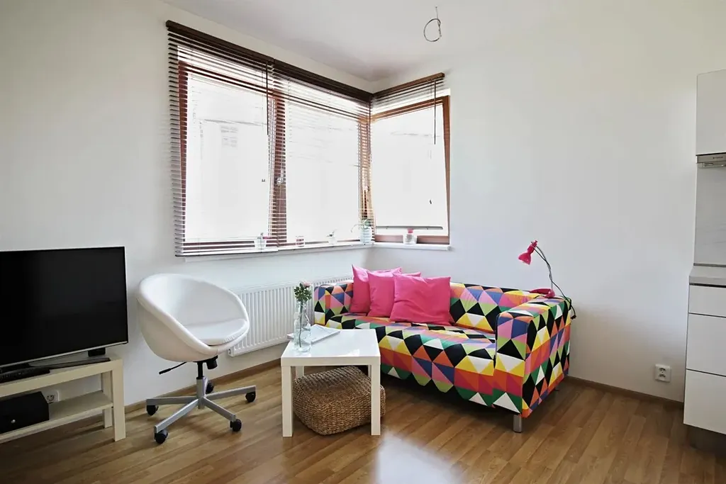 Pronájem moderně zařízeného bytu 1+kk v blízkosti Mendlova náměstí, nově vzniklé a vyhledávané náplavky řeky Svratky, na ulici Křídlovická.