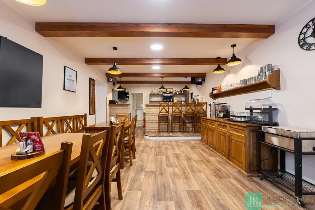 Celý interiér je řešen v příjemných tónech dřeva a je po zdařilé rekonstrukci.