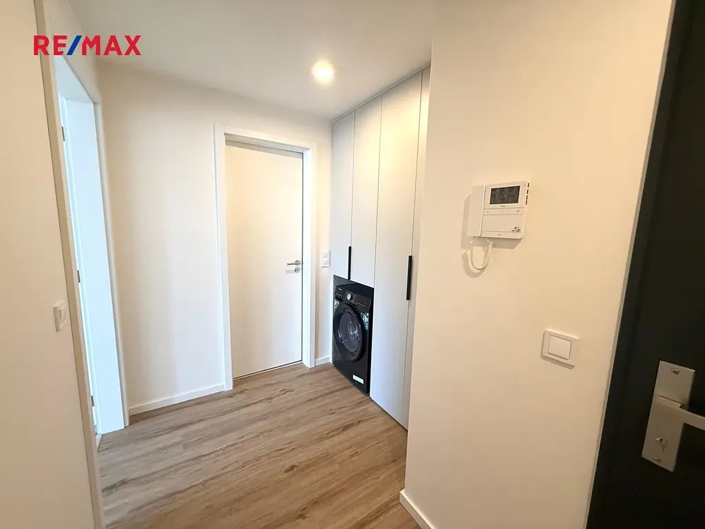 Interiér bytu je je moderně zařízen pro maximální komfort nájemníka. Vstupní předsíň disponuje vestavěnou skříní se zabudovanou pračkou. Koupelna je moderně zařízena a vybavena velmi komfortním sprchovým koutem. Obývací pokoj tvoří z části moderní kuchyňská linka ve tvaru L s vestavěnými spotřebiči (lednice, trouba, varná deska, digestoř a myčka nádobí) a obývací část se vstupem na balkon. Na obývací pokoj navazuje prostorná ložnice s velkou vestavěnou šatní skříní. Velká okna zajišťují oběma pokojům dostatek přirozeného světla a pocit vzdušnosti.