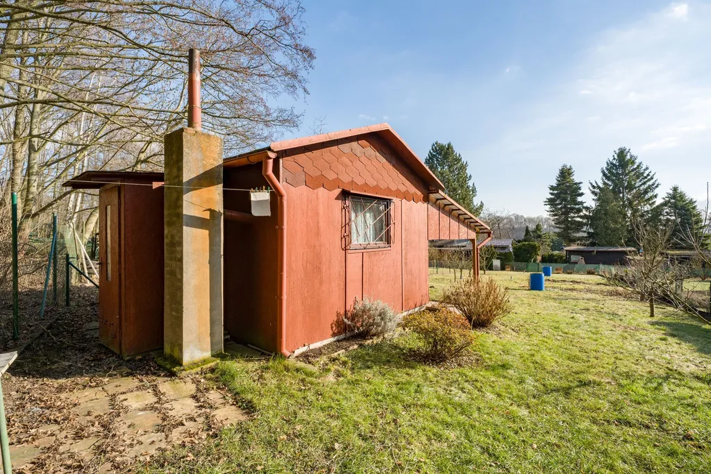 Na pozemku se nachází také praktický zahradní domek na uskladnění dřeva a nářadí.
