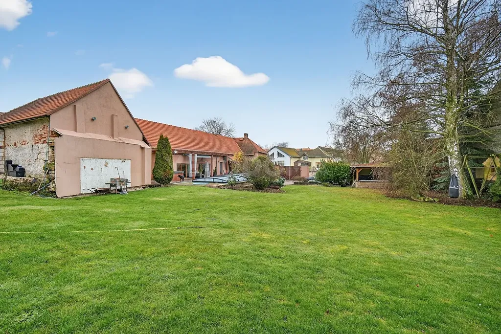 • Zahrada: zahradní domek, udržovaný trávník.