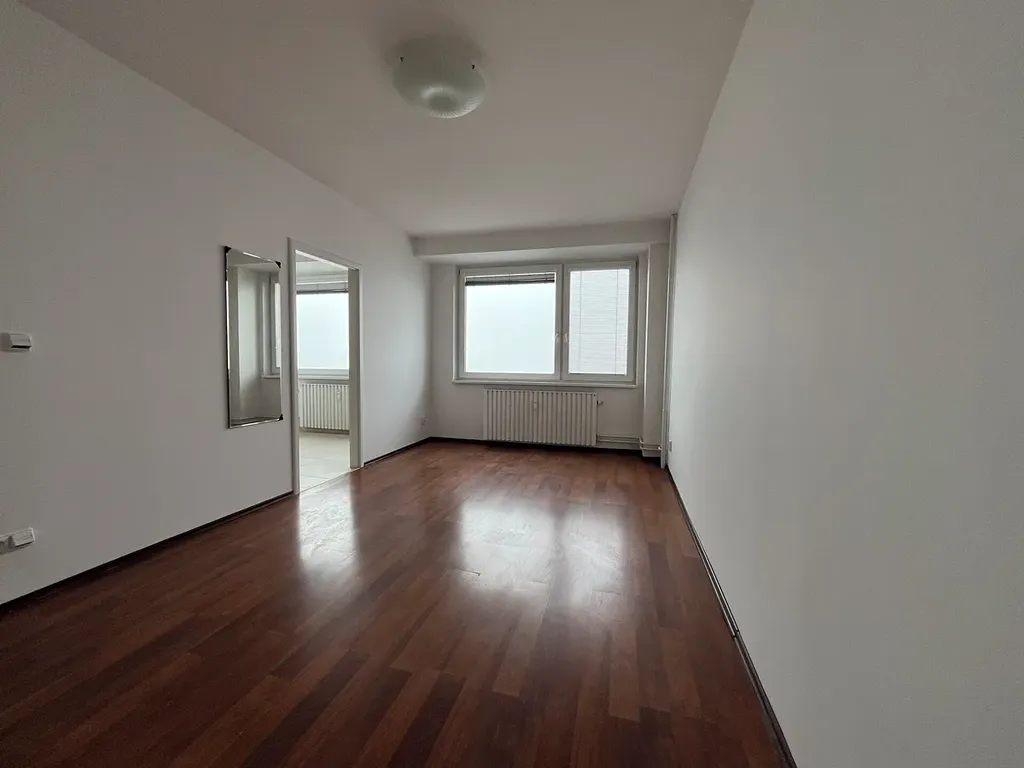 Dispozice bytu nabízí prostorný obytný pokoj, samostatnou kuchyň, koupelnu, toaletu a předsíň s komorou (dostatkem úložného prostoru). Díky umístění v 9. patře je byt příjemně světlý a nabízí hezký výhled do okolí.