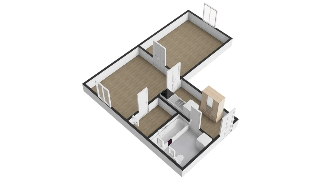 Světlý byt se nachází ve 2. patře památkově chráněného cihlového domu. Byt je zařízen základní kuchyňskou linkou, která se nachází nově v samostatné kuchyni v prostoru bývalé šatny.