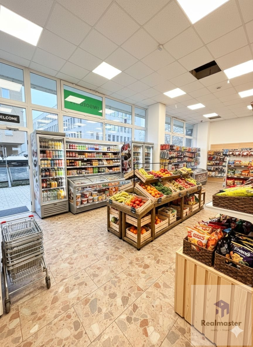 Přízemní prostor s prodejní plochou 452m2 s výlohami a dvěma vstupy je umístěn do komplexu obchodů na velmi frekventované ulici. Momentálně jsou prostory využívány jako prodejna oděvů, konfekce a spotřebního zboží s denní otevírací dobou.