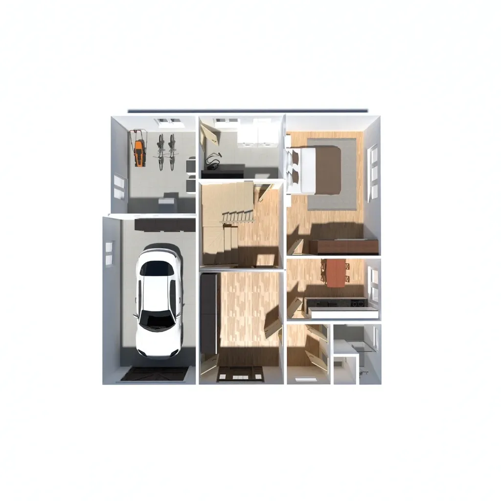 V 1. nadzemní podlaží se nachází bytová jednotka 1+1, která zahrnuje kuchyni, obývací pokoj a koupelnu se sprchovým koutem a odděleným WC. Z prostorné chodby je vstup do garáže a kotelny, kde je umístěn kotel na tuhá paliva.
