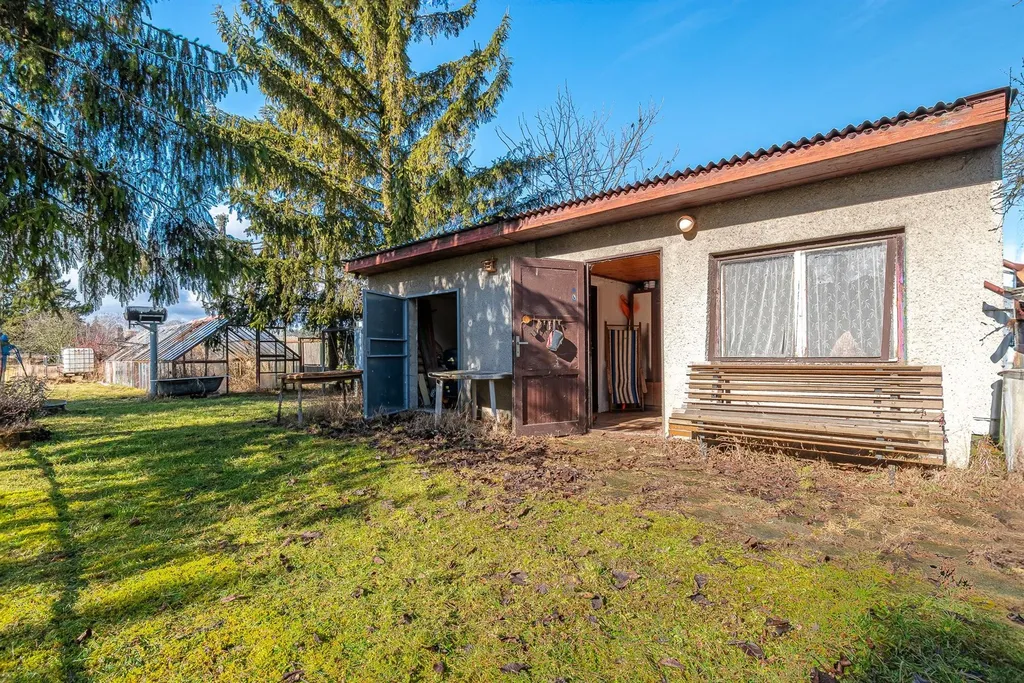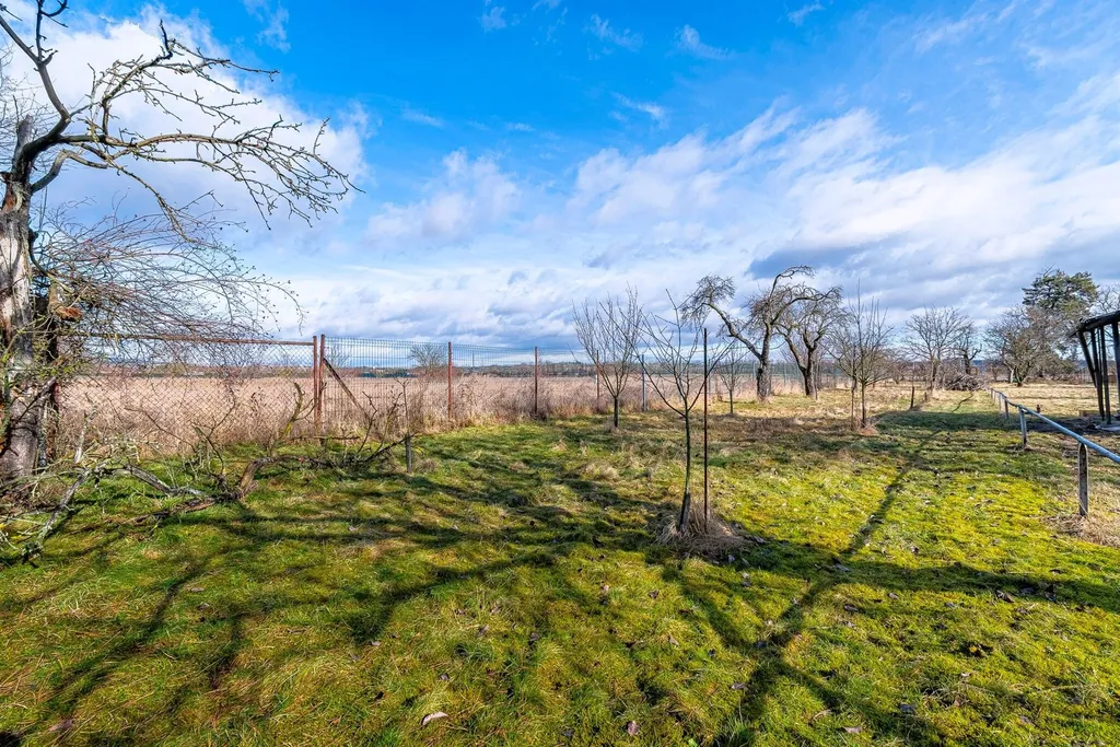 Zděná chata o zastavěné ploše 25 m2 s velkým rovinatým pozemkem (zahradou).