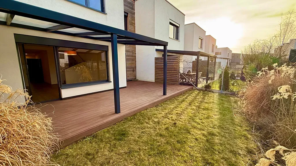 V přízemí najdete prostorný obývací pokoj s kuchyňským koutem s přímým vstupem na zahradu, dále samostatné WC a vstup do garáže přímo ze zádveří domu.