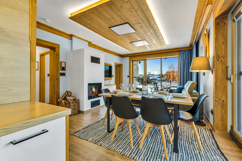 Apartmán je součástí uzavřeného luxusního resortu v alpském stylu s přímým vstupem na soukromou pláž.