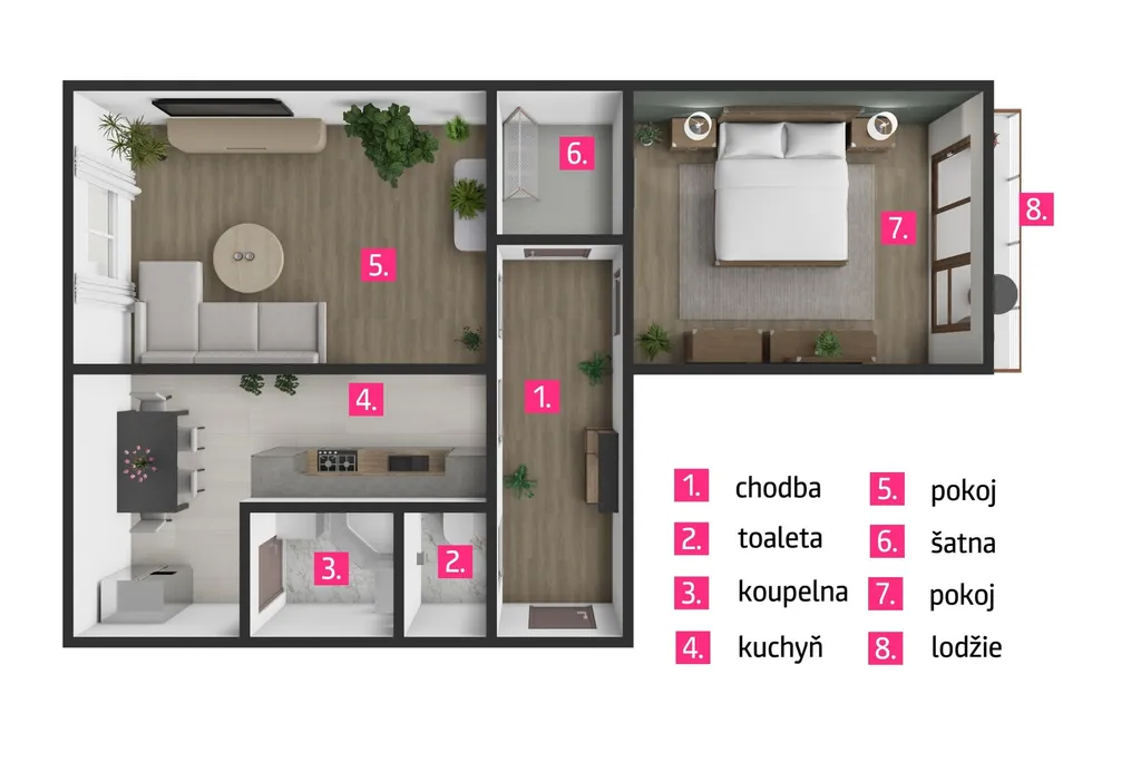 Jednotka je ve velmi dobrém stavu, má plastová okna a disponuje prostorným balkonem, který nabízí příjemné místo k odpočinku. Dispoziční řešení se samostatnou kuchyní a dvěma neprůchozími pokoji zajišťuje dostatek soukromí i pohodlí.