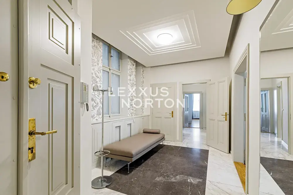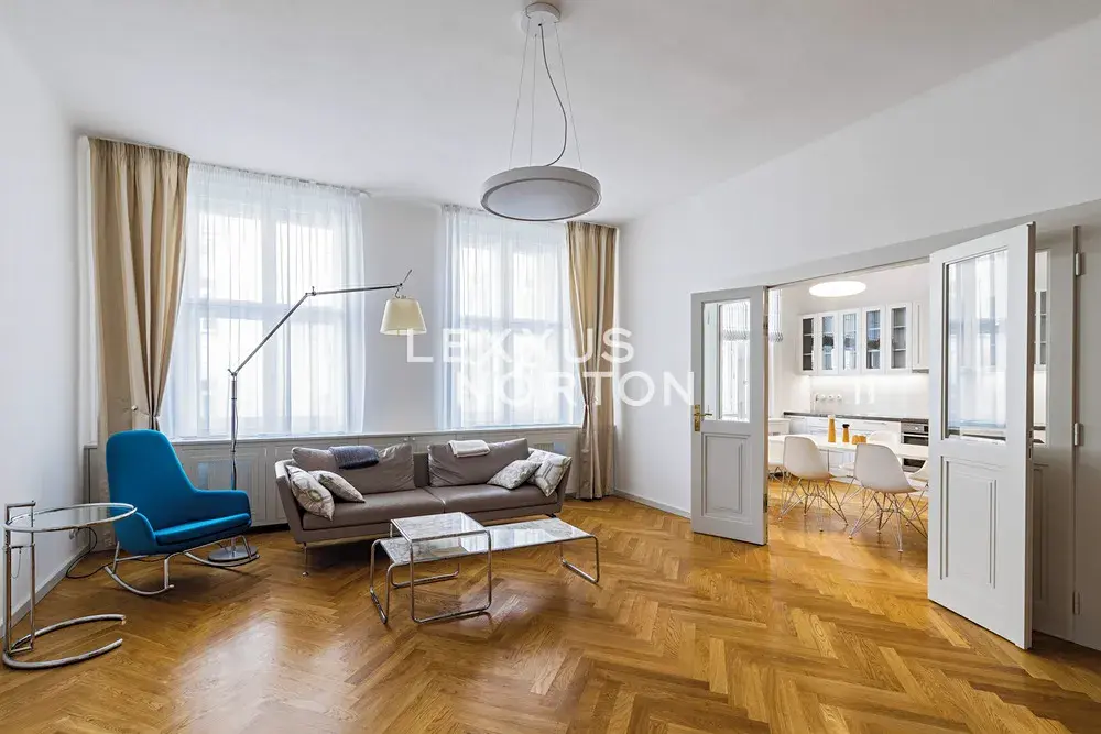 Velkoryse rekonstruovaný a plně zařízený byt 3+1 se zachovanými původními prvky se nachází ve 4. nadzemním podlaží domu s výtahem z přelomu 19. a 20. století. Dispozice bytu nabízí prostornou vstupní halu, dvě ložnice, obývací pokoj, kompletně vybavenou kuchyni, koupelnu, samostatnou toaletu, šatnu a technickou místnost.