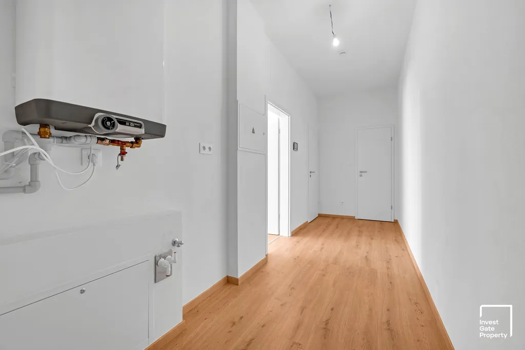 Při stavbě domu byl kladen důraz na praktické řešení a vysoký standard bydlení. Byt má v ložnici dokonce šatnu o výměře 4m2, v celém bytě je instalováno podlahové topení, byt má elektrické předokenní žaluzie. K bytu je možné si zakoupit kryté garážové za 300tis. Kč a sklep přímo na patře za 100tis. Kč. Dům má energetickou třídu B, což zaručí minimální provozní náklady bytu. Každý byt má vlastní ohřev teplé užitkové vody přímo v bytě, čím se sníží provozní náklady. Do bytu je přiveden optický kabel pro internet.