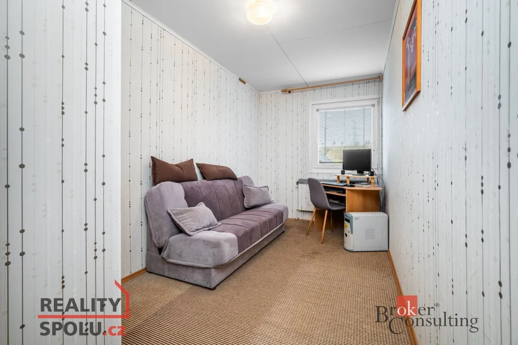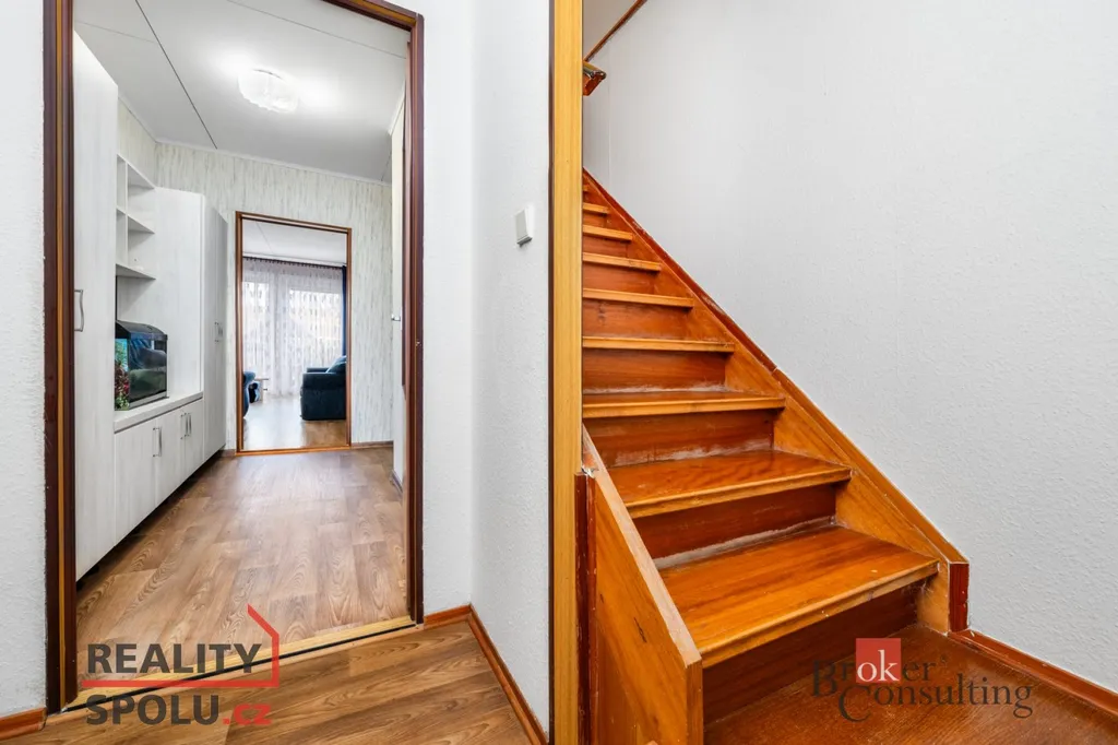 Dispozičně dům poskytuje dostatek soukromí i pro větší rodinu. V přízemí najdete prostornou garáž pro dvě vozidla, tři menší místnosti využitelné jako hobby prostor či pracovna, praktickou místnost pro ukládání potravin a technické zázemí. Hlavní část domu se pak rozkládá v patře, kde je velký obývací pokoj přes který se přechází do kuchyně. Také odtud vede vstup na prostorný balkon vybavený novým a voděodolným pryskyřično-pískovým kobercem. Také se na tomto patře nachází dvě ložnice a další dva samostatné pokoje. Koupelna je vybavena vanou se zástěnou pro pohodlné sprchování a dvěma umyvadly, toaleta je řešena samostatně. Pokud by vám přesto prostor nestačil, nevyužitá půda pod střechou nabízí skvělý potenciál k případné další vestavbě.