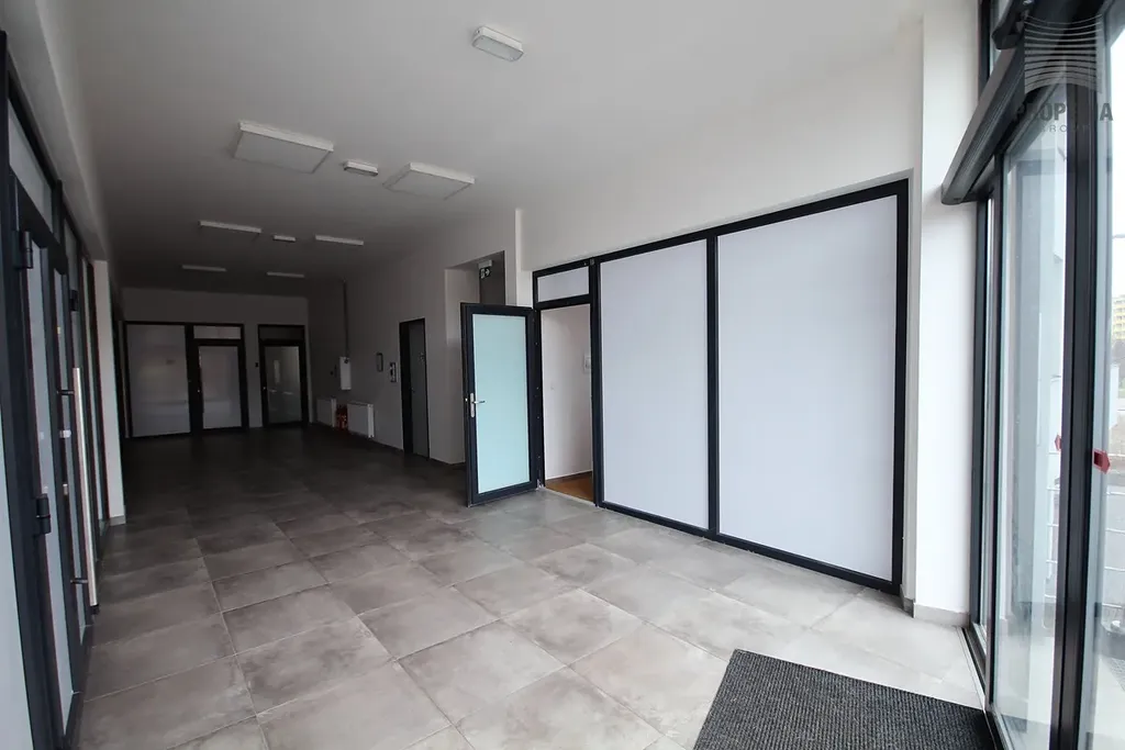 Prostor je kompletně vybaven – součástí je kuchyňská linka, vestavěné skříně, klimatizace a vzduchotechnika. Velké výlohy směrem do ulice nabízejí ideální možnost umístění reklamních polepů a zajišťují výbornou viditelnost.