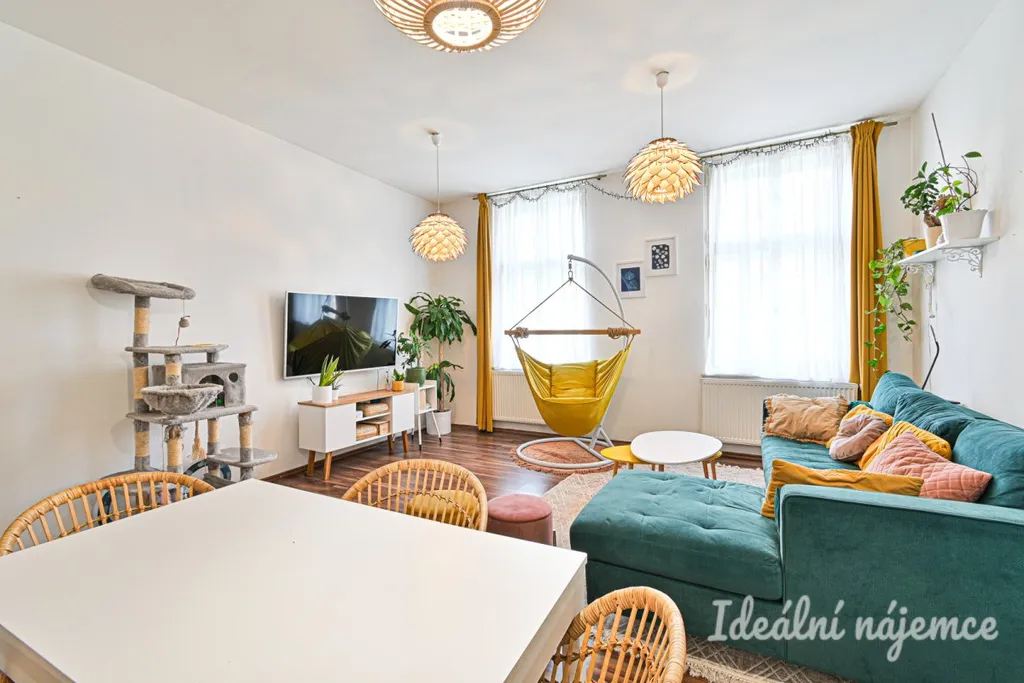 Naopak z bytu nebude součástí podnájmu: televize, koberec a houpačka v obývacím pokoji, postel a noční stolky v ložnici, bílý kallax, stůl a malá šuplíková skříňka v chodbě.