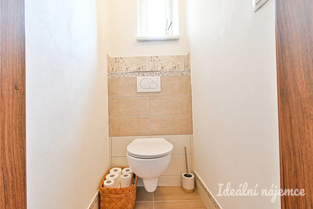 Byt se nabízí částečně vybavený dle fotografií. K dispozici zůstává jídelní stůl, gauč, vestavěné spotřebiče (lednice, myčka, varná deska, trouba), pračka a sušička. V koupelně navíc zůstane regálek a koš na prádlo, v obýváku police a konferenční stolek u gauče.