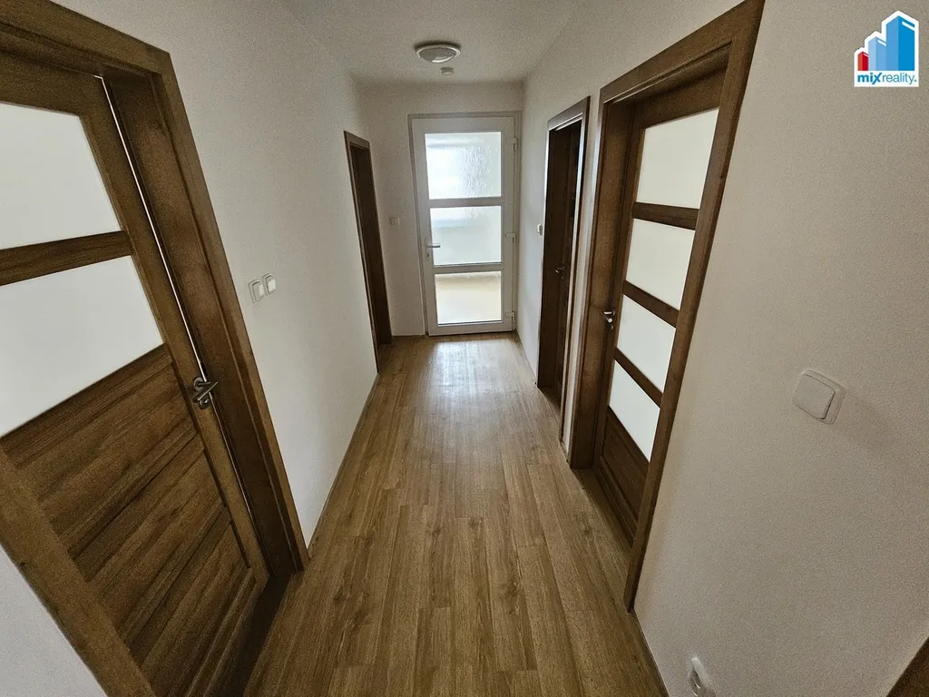 Dispozice bytu: Prostorný obývací pokoj s moderní kuchyňskou linkou, dva samostatné pokoje, předsíň, technická místnost, koupelna s vanou i sprchovým koutem, samostatné WC.