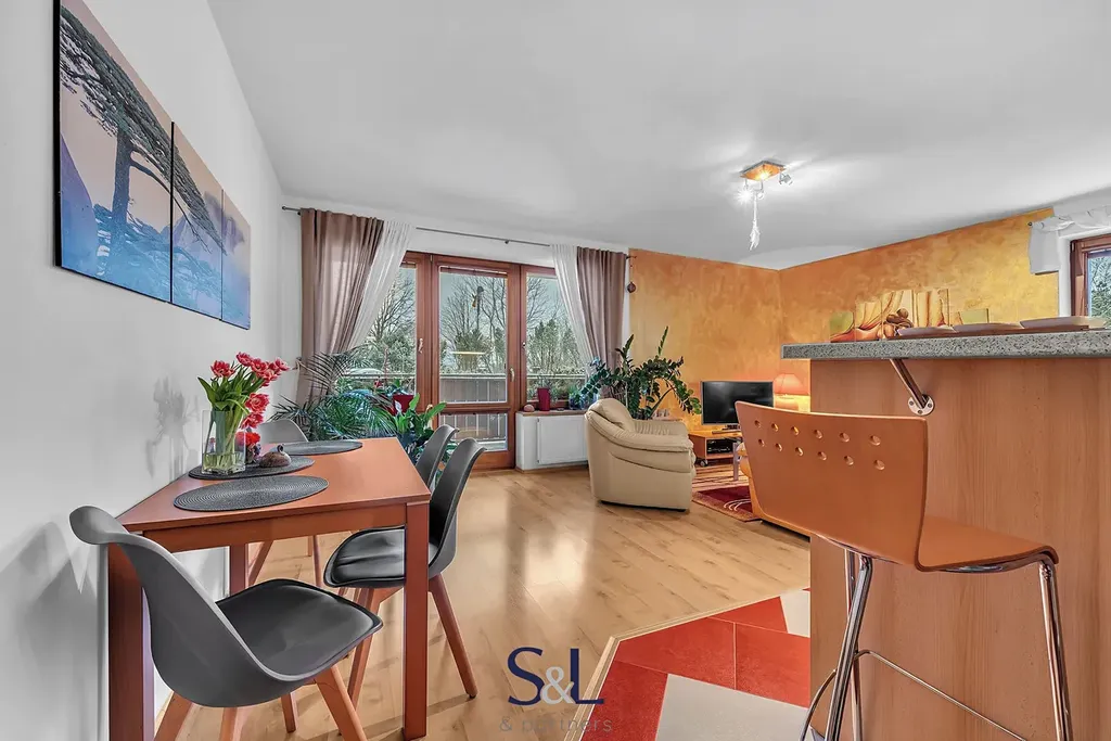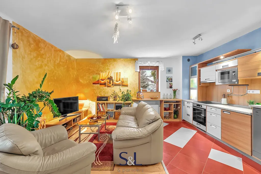 Dominantou je prostorný obývací pokoj s kuchyňským koutem orientovaný na jih, který je po celý den příjemně prosvětlený přirozeným světlem. Byt je ve velmi zachovalém a udržovaném stavu a umožňuje okamžité nastěhování bez nutnosti větších investic.