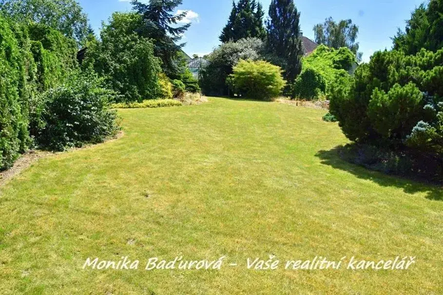 Prvorepubliková vila byla postavena v letech 1935 -1938 a je obklopena rozlehlou a krásně vzrostlou klidovou zahradou, která zajišťuje vlastníkům pocit soukromí. Vzrostlá výsadba dokonale odděluje zahradu i dům od okolních nemovitostí. Na zahradě se na ploše 180 m2 nachází tři velké a funkční skleníky, ideální k pěstování vlastní zeleniny. Voda ze skleníků je jímána do kaskádových jezírek, která na zahradě vytváří romantickou atmosféru. Severní část zahrady přiléhá k cestě a může zde být další stavební místo o šířce 12 m.