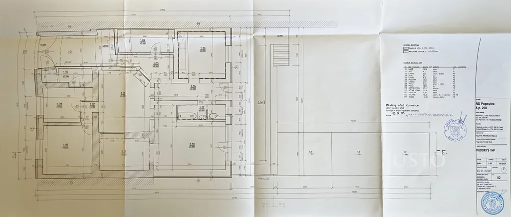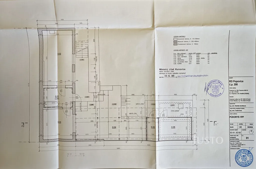 Dům je podsklepený, v 1. PP jsou tři místnosti, z toho dvě technické místnosti a koupelna s vanou, vše o celkové výměře 35,86 m².