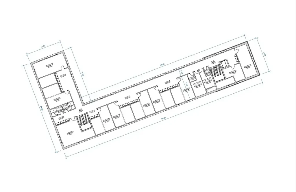 Dispoziční řešení je navrženo s ohledem na funkční provoz, bezbariérový přístup a jasné oddělení pohybu pacientů a personálu. V přízemí se nachází vstupní lobby s recepcí, čekárnami, toaletami a základním zázemím. Vyšší podlaží jsou určena pro odborné ordinace, vyšetřovny a administrativní prostory. Studie umožňuje flexibilní přístup podle zvoleného scénáře výstavby – varianta A počítá se dvěma nadzemními podlažími a hrubou podlažní plochou cca 1 348 m², varianta B se třemi nadzemními podlažími a plochou přibližně 2 086 m².