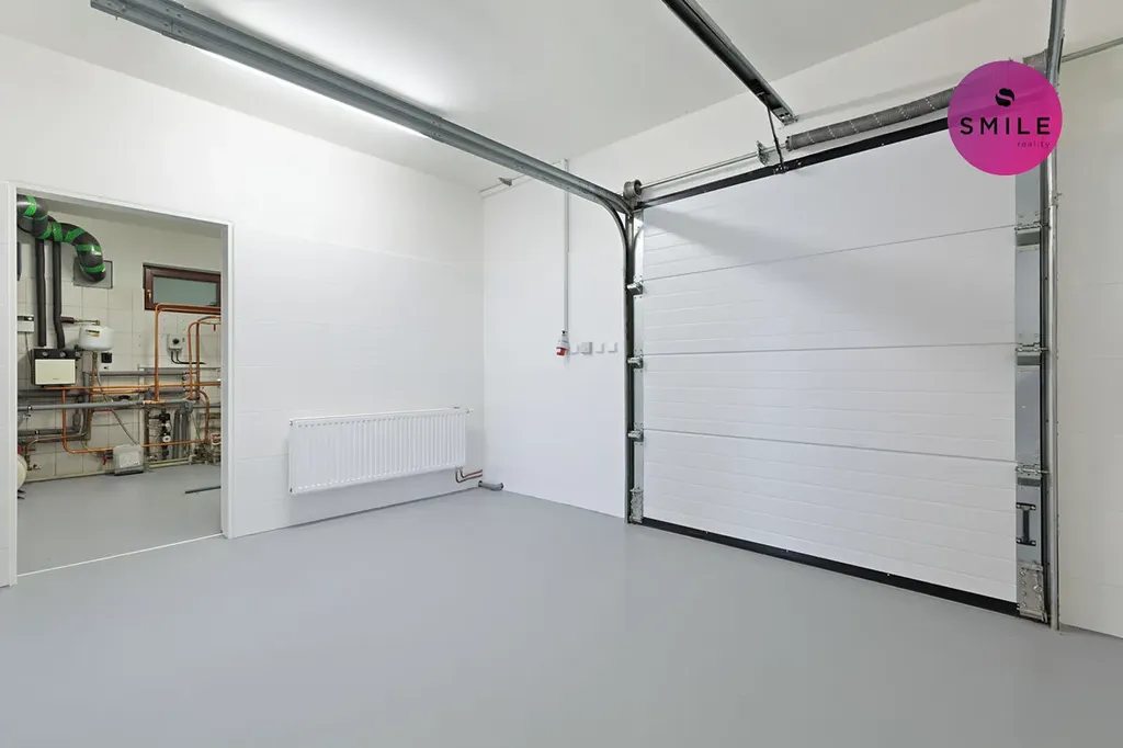 Dům je propojen s dvojgaráží na auta a hned vedle je další garáž na motocykly. V zadní části dvojgaráže je samostatná místnost na zahradní techniku, sportovní vybavení a další věci. Vedle je samostatná technická místnost.