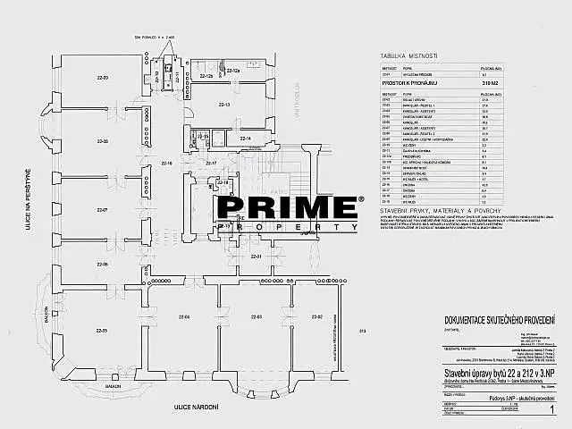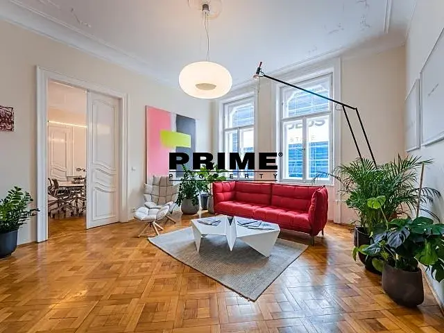 Zrekonstruované, prostorné, klimatizované, NEZAŘÍZENÉ klasické kancelářské prostory k pronájmu, 319m2, 9 kanceláří + kuchyňka, situované ve 2. patře zrekonstruovaného secesního domu s výtahem. Budova se nachází v centru města, u nákupního centra Quadrio, v těsné blízkosti zastávky tramvaje, stanice metra Národní třída a Můstek, blízko obchodů, kaváren, restaurací a Václavského náměstí a nedaleko Národního divadla, nábřeží a Staroměstského náměstí.