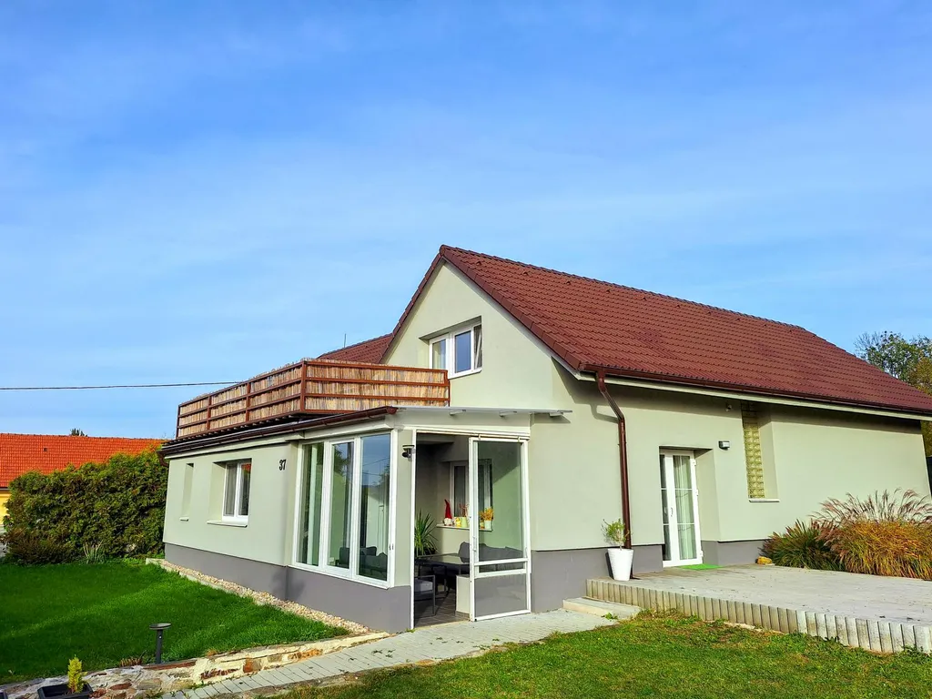 Dům je orientován na jih a nabízí 162 m2 obytné plochy, částečné podsklepení a přibližně 30 m2 půdního prostoru s možností dalšího rozšíření, například o samostatný pokoj či bytovou jednotku, přičemž přípojky jsou již připraveny. Součástí je zahrada o výměře 735 m2, která dům obklopuje ze všech stran, a dvě terasy včetně střešní terasy o ploše cca 30 m2 s otevřenými výhledy do okolní krajiny. Výrazným benefitem je také zimní zahrada, kterou lze komfortně využívat většinu roku.