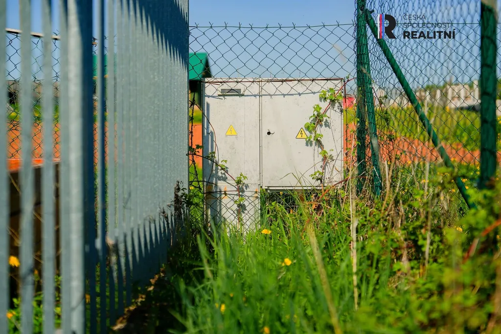 Na pozemku je menší chatka-buňka, která může sloužit jako zázemí během stavby nebo k víkendovému odpočinku.