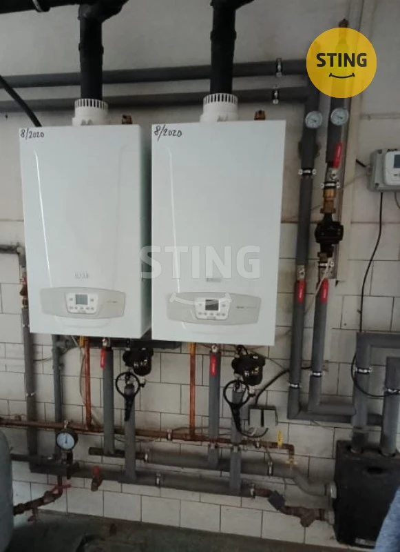 Topení je zajištěno pro celý dům společnou kotelnou ,kde jsou nové dva kondenzační kotle,el.bojler na ohřev teplé vody .