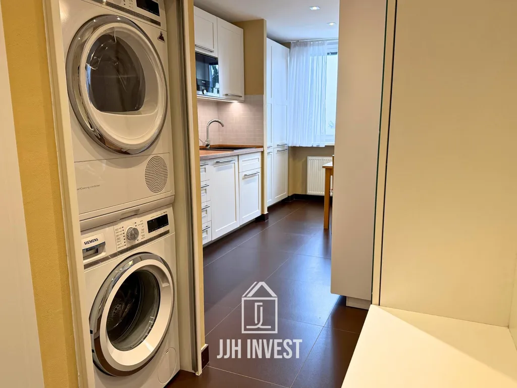 Dispozice: obývací pokoj se sklopnou manželskou postelí, díky které lze byt využívat obdobně jako 3+1, dále samostatný pokoj, kuchyni, koupelnu a oddělené WC. Pračka se sušičkou je prakticky umístěna ve výklenku chodby. Byt je vybaven inteligentním systémem Siemens (KNX) pro regulaci vytápění a osvětlení, senzory CO₂ a zabezpečovacím systémem.