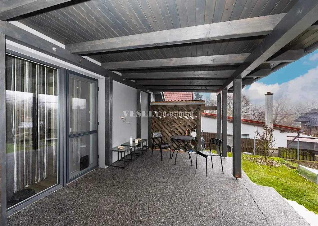 Dům prošel kompletní rekonstrukcí a nabízí současný standard bydlení s důrazem na funkčnost, světlé prostory a kvalitní materiály. Interiér působí vzdušně, s moderní kuchyní, obývacím prostorem s krbem, prostornou koupelnou a ložnicemi v klidové části domu. Díky velkým oknům je dům přirozeně prosvětlen po celý den. Celkový dojem doplňuje přímý vstup na zahradu, který propojuje interiér s venkovním posezením.