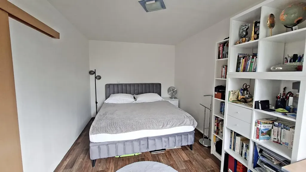Výhodou bytu je prostorná šatna s posuvnými zrcadlovými dveřmi a velká zděná koupelna s bezproblémovým místem pro pračku.