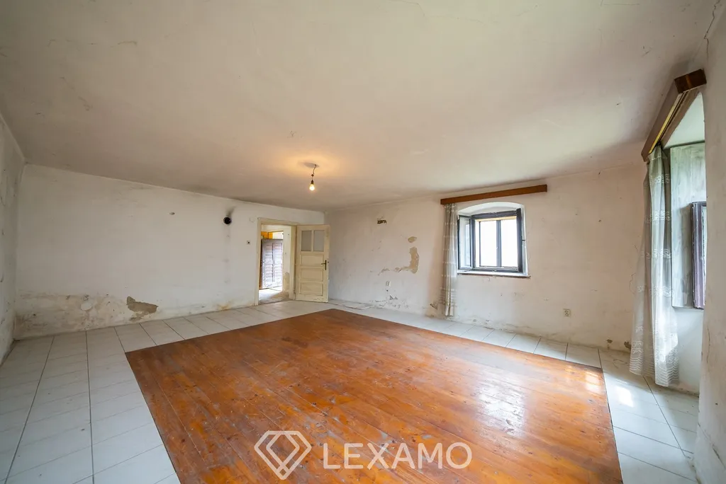 Dům je velmi starý a vyžaduje kompletní rekonstrukci, což nabízí novým majitelům možnost přizpůsobit si jej podle svých představ a potřeb. Momentálně není dům obyvatelný, jedinečná příležitost obnovit a oživit jeho historický charakter. Součástí prodeje je nemovitost s nádvořím včetně prostorné stodoly o celkové ploše 912 m². Je napojen na elektrický proud, přípojka plynu je před domem na pozemku, zdroj vody je řešen vlastní studnou.