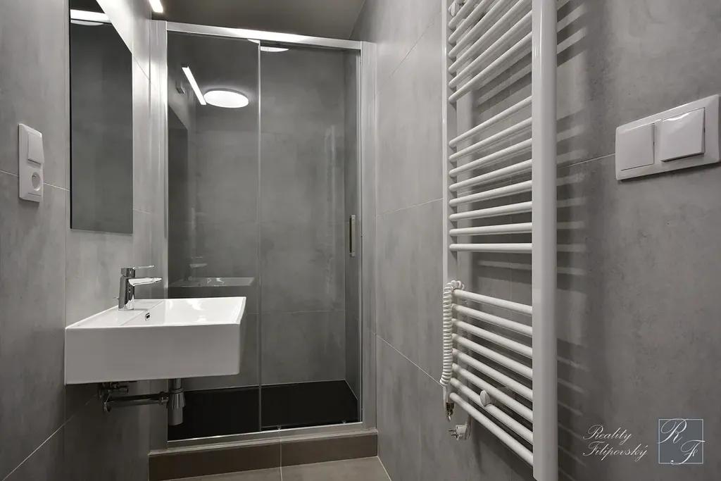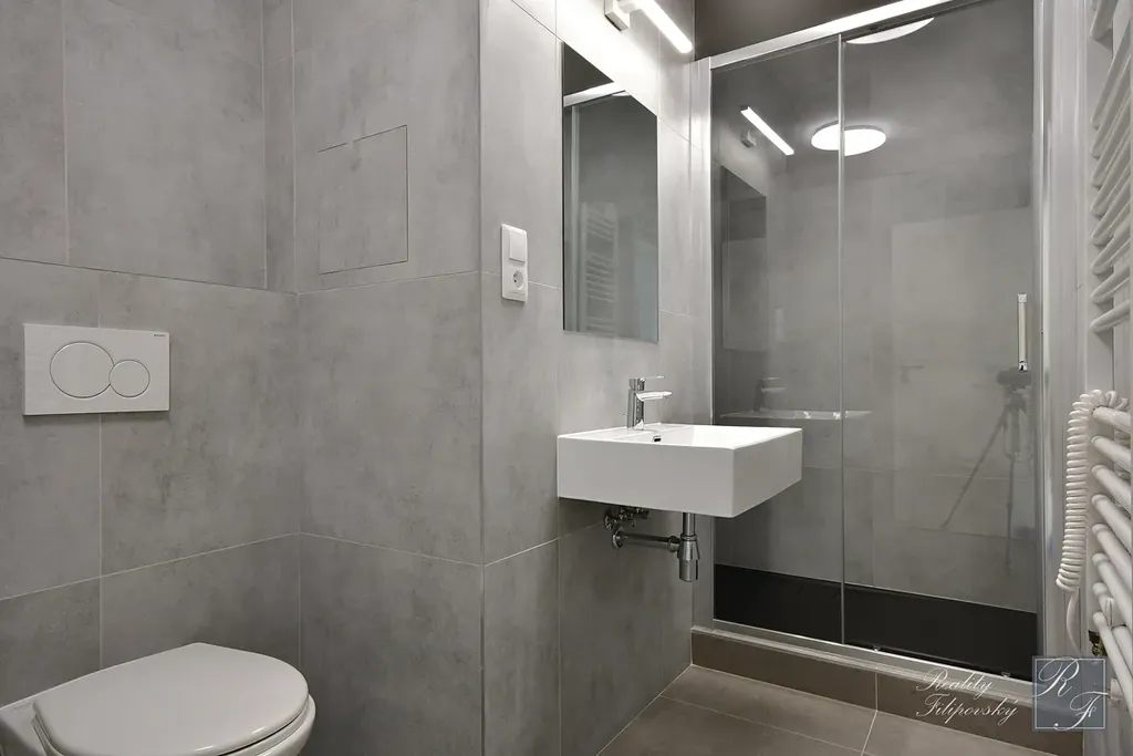 Rekonstrukce bytu byla právě dokončena zkušenou realizační firmou a zahrnovala vše od nivelace podlah, vyzdění obou jader, vodoinstalaci, odpady, vzduchotechniku i elektroinstalaci zakončenou revizní zprávou. Na hlavní i druhou kuchyňskou linku (kterou můžete, ale nemusíte instalovat) jsou připraveny všechny přípojky elektřiny i přívody vody a odpadu tak, aby budoucího vlastníka při návrhu kuchyně nijak neomezovaly a zajistily dodržení platných norem. Kuchyňské linky nejsou součástí nabídky a nový vlastník si je řeší dle svých potřeb.