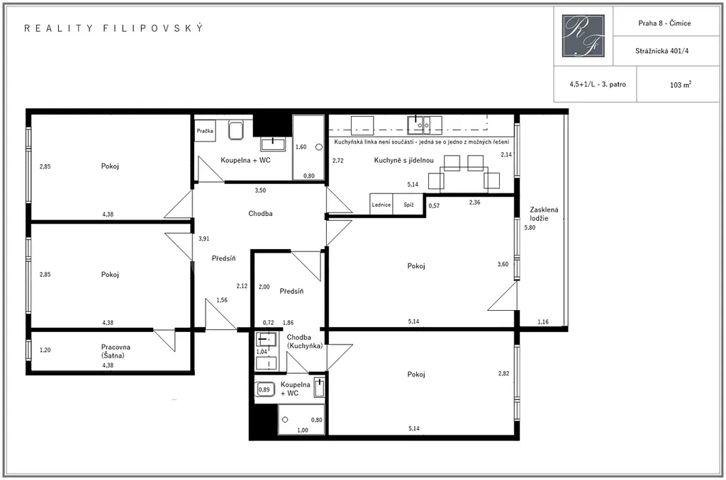- 1x prostor pro umístění malého kuchyňského koutu v části bytu, kterou lze užívat separovaně a která dále obsahuje jeden z uvedených pokojů, samostatnou koupelnu s toaletou a samostatnou vstupní chodbu s místem na úložné prostory, případně i na automatickou pračku,