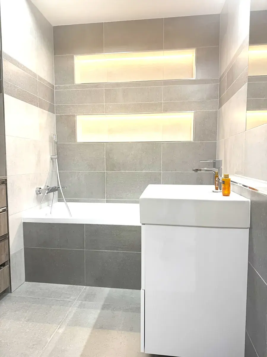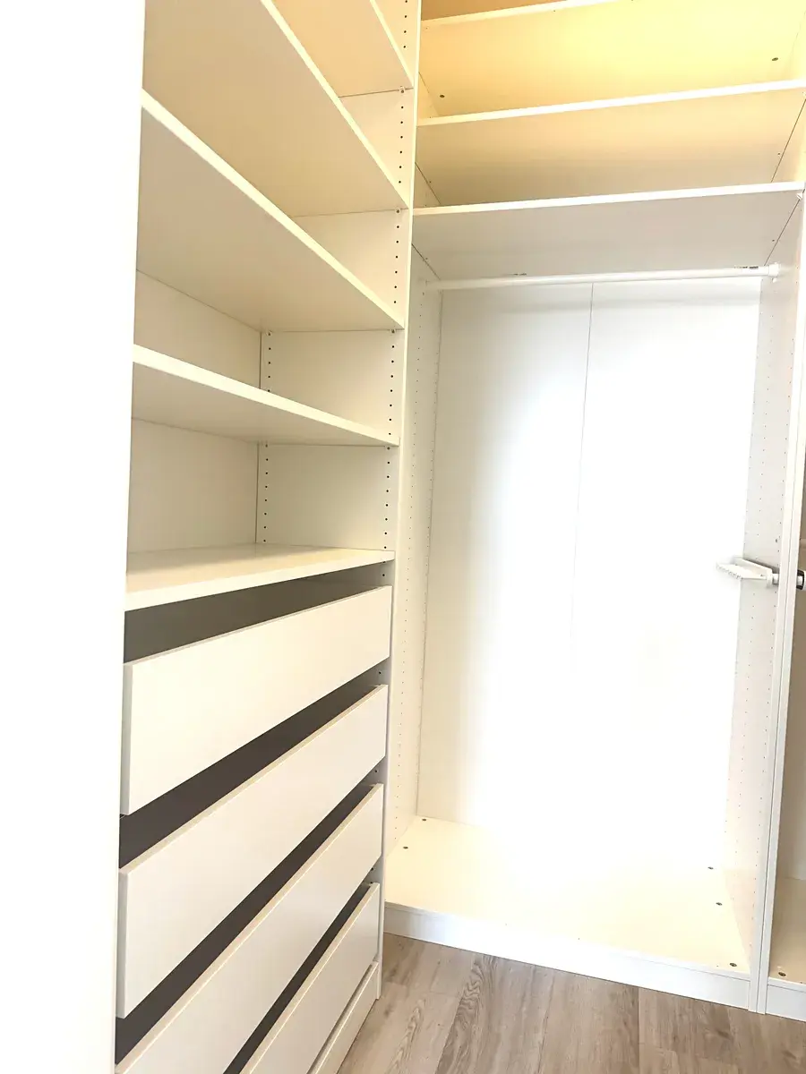 Hlavní ložnice disponuje samostatnou šatnou, vstupem na druhou terasu a koupelnou se sprchovým koutem a toaletou. V této koupelně je výhodou okno. Ve druhé ložnici je vestavěná skříň. Do druhé koupelny je vstup z předsíně a koupelna je s vanou. V obou koupelnách je podlahové topení. Dále samostatná toaleta a praktická technická místnost s pračkou. Okna ve všech pokojích mají venkovní žaluzie na dálkové ovládání. Byt se pronajímá částečně zařízený tak, jak je zachyceno na fotografiích.