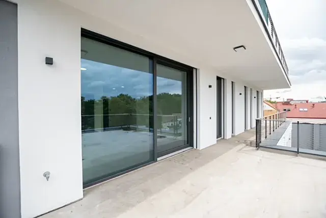 Ke standardu bytu patří tepelné čerpadlo, velkoformátová okna s elektrickou žaluzií a reflexní folií, podlahové vytápění.