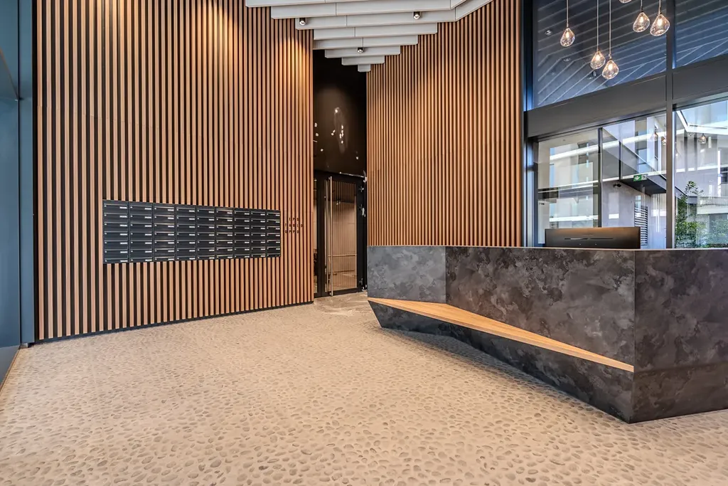 Interiér je zařízen v moderním stylu s důrazem na komfort a funkčnost. Byt se nachází v novostavbě s recepcí a výtahem. K bytu náleží také sklep a garážové stání přímo v domě, což zajišťuje maximální pohodlí.