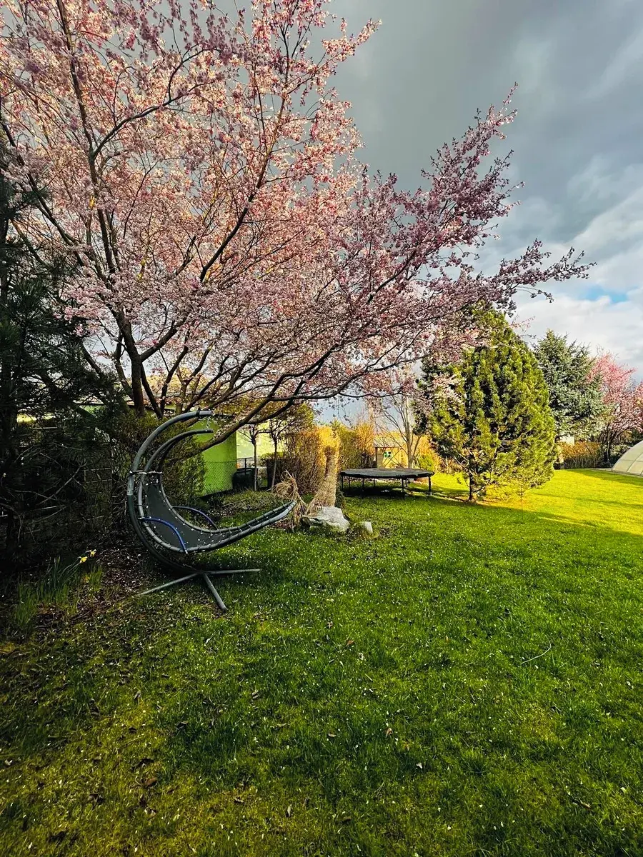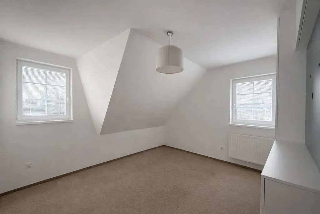 V patře jsou tři samostatné ložnice disponující vestavěnými skříněmi a úložnými systémy na míru, jedna má přímý vstup na balkon s výhledem do klidné ulice a okolní zeleně. Hlavní koupelna je vybavena rohovou vanou, toaletou a dostatkem prostoru pro pohodlné každodenní fungování rodiny. Dům je zabezpečen alarmem. Zahrada poskytuje příjemné soukromí díky vzrostlé zeleni a vyhřívaný bazén s tepelným čerpadlem umožňuje komfortní využití po většinu sezóny.