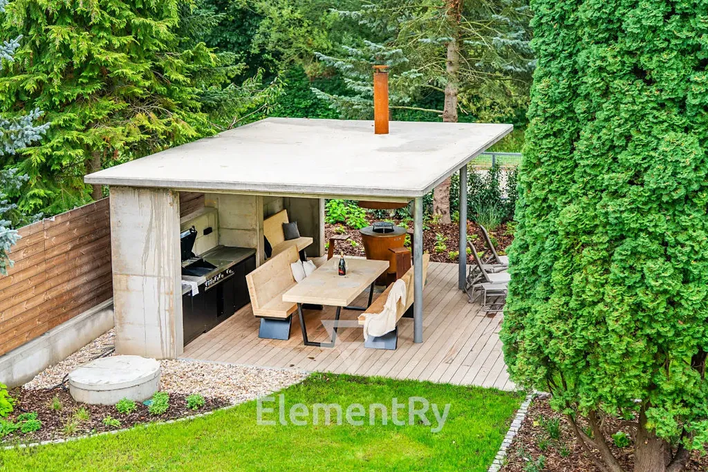 - kompletní zázemí pro komfortní život (gril, ohniště, posezení)