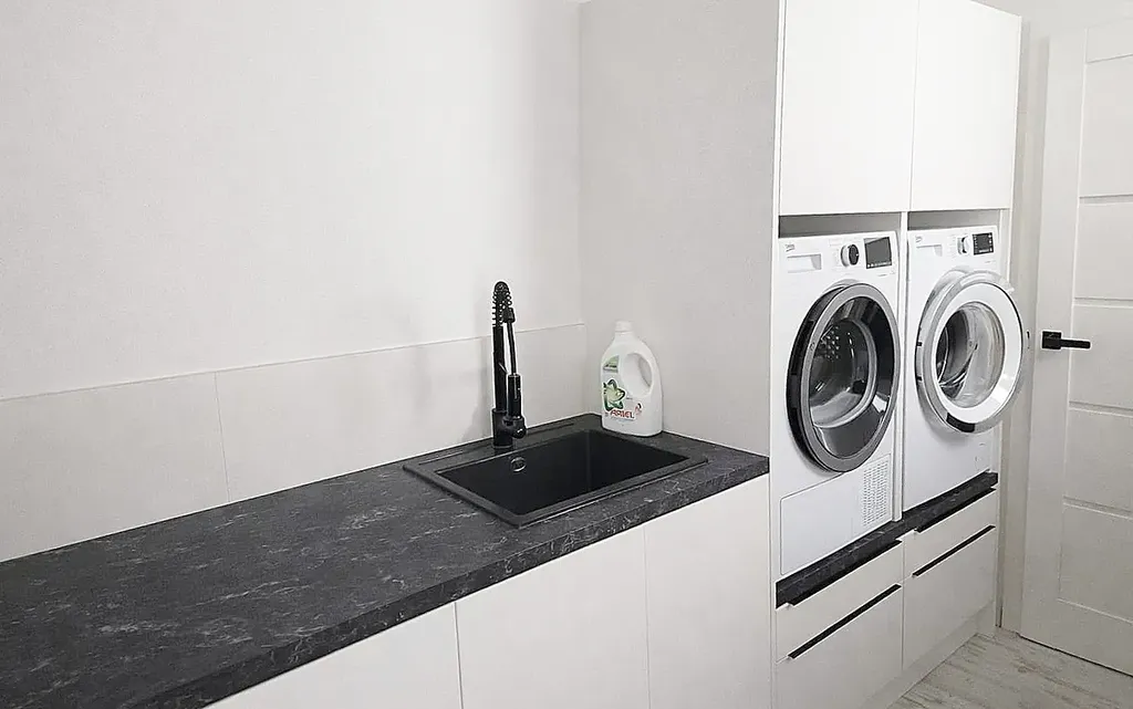 Dům se skládá ze tří samostatných ložnic, obývacího pokoje s jídelním koutem, pracovny, dvou koupelen, šatny a technické místnosti. Je vybaven kompletně zařízenou kuchyňskou linkou a vestavěným nábytkem.