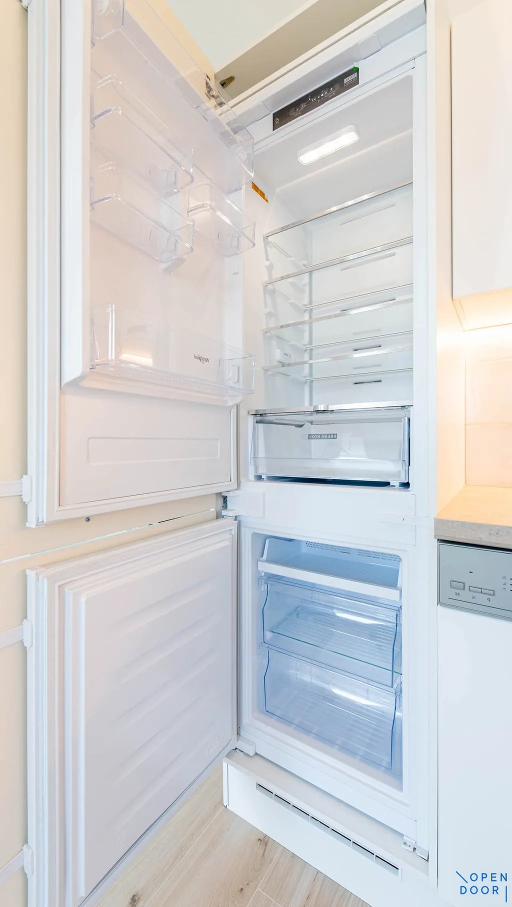 Obě místnosti směřují do ulice. Kuchyň je vybavena kuchyňskou linkou s vestavěnými spotřebiči – lednicí s mrazákem, myčkou nádobí, elektrickým sporákem s varnou deskou a troubou, digestoří. Koupelna je se sprchovým koutem a pračkou, WC je umístěno v koupelně. Předsíň s kuchyní spojují posuvné celoskleněné dveře. V předsíni jsou na míru vyrobené úložné prostory Celý byt je vyladěn do příjemných světlých odstínů, charakteristickým znakem všech místností je ergonomické řešení s dokonalým využitím obytného prostoru a vybavení až do nejmenších detailů (led osvětlení kuchyňské linky, vestavěný koš, v koupelně topný žebřík a zabroušené zrcadlo, stylový bytový zvonek ...).