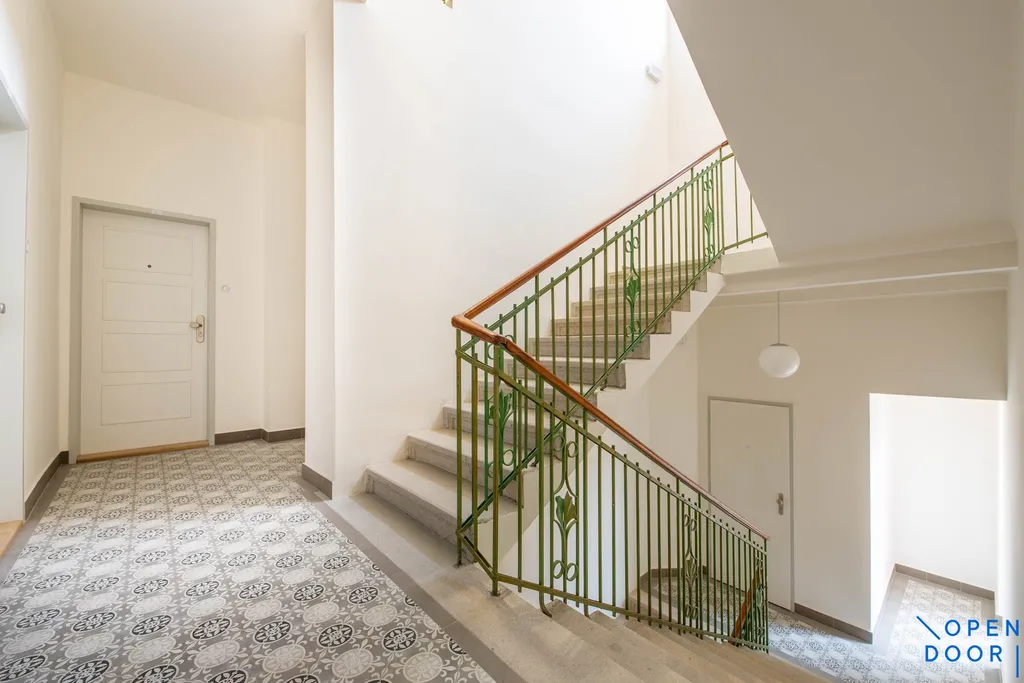 Na oknech jsou instalovány žaluzie, byt má bezpečností, protipožární vstupní dveře a dalším příjemným bezpečnostním prvkem všech bytů v domě jsou domácí telefony s obrazovkou snímající vstup z ulice. Topení a ohřev vody zajištuje vlastní plynová kotelna v suterénu domu. Celý dům prošel zásadní velmi citlivou rekonstrukcí, majitelům se podařilo navrátit domu jeho původní atmosféru – mozaikové dlažby, schodiště s rekonstruovanými dobovými kovářskými prvky, krásné osvětlení chodeb.