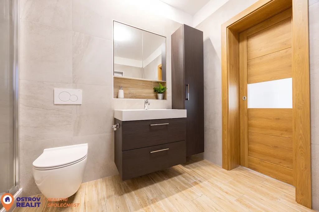 Skutečným komfortem je prostorná, designově řešená koupelna, která nabízí jak rohovou vanu pro chvíle relaxace, tak i praktický sprchový kout. A je zde i místo na pračku a sušičku. Součástí bytu je moderní domovní videotelefon s možností ovládání přes mobilní telefon. Díky tomu můžete pohodlně otevřít vstupní dveře kurýrovi nebo návštěvě přímo ze svého telefonu, což výrazně zvyšuje komfort každodenního bydlení. Byt je dále vybaven rekuperační jednotkou, kterou lze rovněž ovládat přes mobilní aplikaci. Máte tak plnou kontrolu nad větráním a kvalitou vzduchu jednoduše a přehledně. Moderní technologie zde nejsou jen doplňkem, ale přirozenou součástí pohodlného a současného bydlení.
