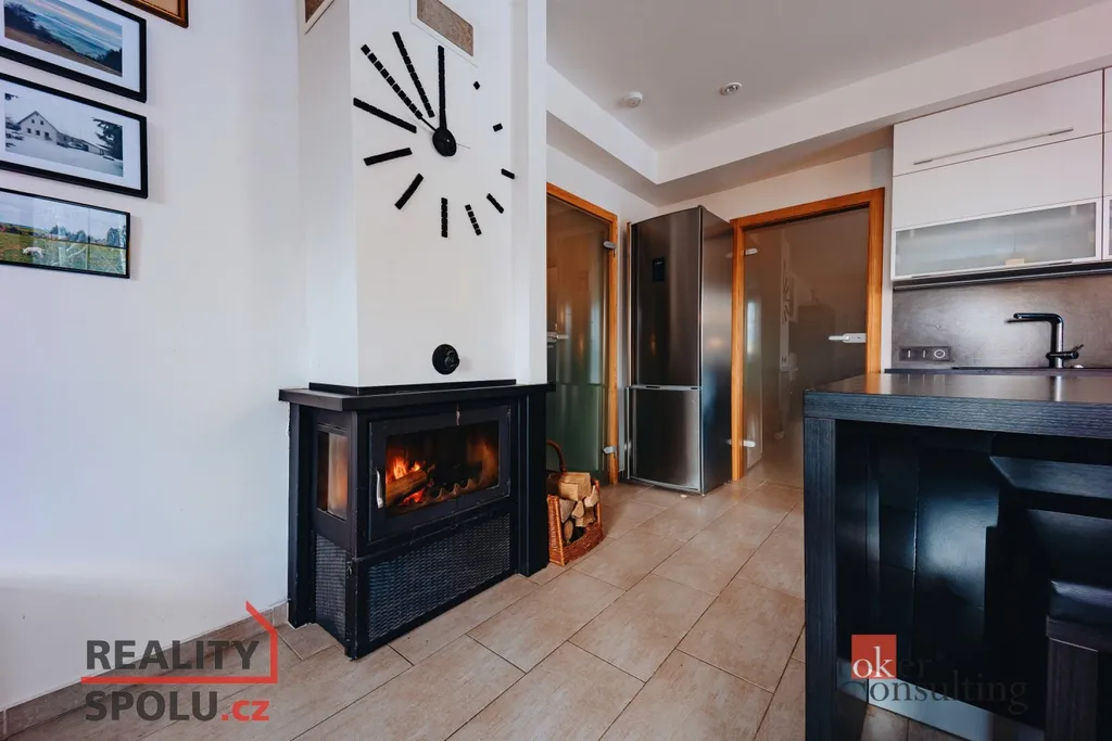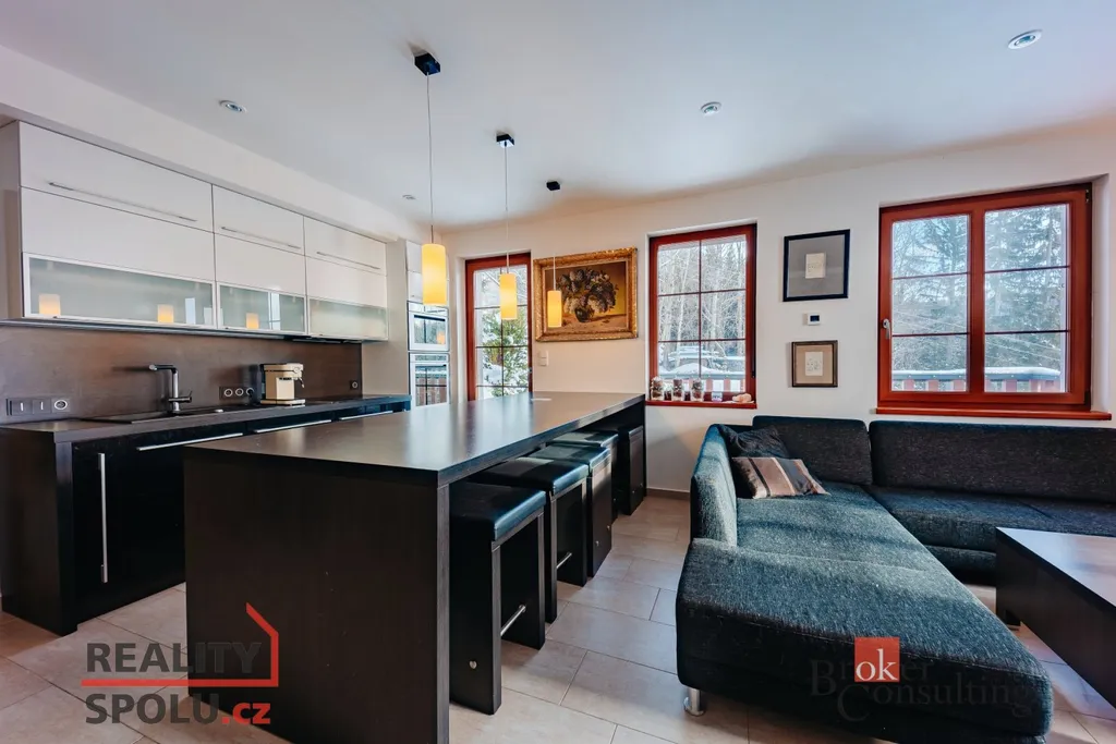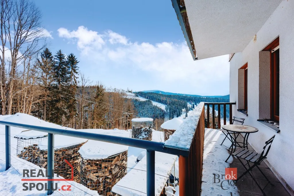 Přímo v Krkonošském národním parku, v horské vesnici Strážné v nadmořské výšce 800 m.n.m. se nachází moderní apartmán, který v sobě stále ukrývá ducha hor. Dispozice 2 + kk a 54 metrů podlahové plochy nabízí dostatečný prostor jak pro klidný rodinný pobyt tak i pro menší oslavy s přáteli. Úsporu prostoru zajišťují vestavěné skříně v chodbě a v ložnici. Kuchyně je plně vybavena vestavěnými spotřebiči a disponuje moderním barovým ostrůvkem s možností posezení. Podlahové vytápění je v celém apartmánu. Pohodovou atmosféru dokreslí krb s rozvodem tepla do ložnice. Koupelna se sprchovým koutem, 2 umyvadly, pračkou a susičkou je oddělena od samostatně stojícího WC. Kdo nemá po celodenní tůře či lyžování horského vzduchu dost, může si ho vychutnávat na vlastní terase plnými doušky. K dispozici také krytý bazén a sauna v suterénu. Vyhrazené parkovací stání u domu. 2 lyžařské vleky se zasněžováním, večerním lyžováním, restaurace, kavárna, lyžařská škola, či strojově upravované běžecké stopy v docházkové vzdálenosti od domu. Připraveno k okamžitému nastěhování, bez nutnosti dalších investic do vybavení.