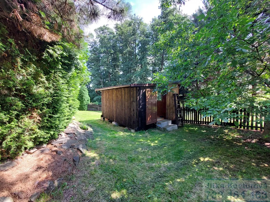 Na pozemku se nachází dřevěná pergola s grilem a posezením, napojena na elektřinu. Dále okrasné dřeviny a také studna s užitnou vodou. Ta je napojena do domu vodárnou, na zimu se odpojuje, voda se vypouští. Nyní je přívod vody odpojen. Dům je připojen na elektřinu 230V, odpady jsou svedeny do žumpy o kapacitě 6-8 m3, umístěná vedle chalupy. V přední části pozemku vedle chalupy je umístěna dřevěná bouda, s využitím na letní přespání pro hosty. Televizní připojení přes satelit lze zprovoznit. Vybavení chalupy nábytkem je součástí prodeje, tj. skříně, postele, stoly, židle křesla atd., dle fotodokumentace.