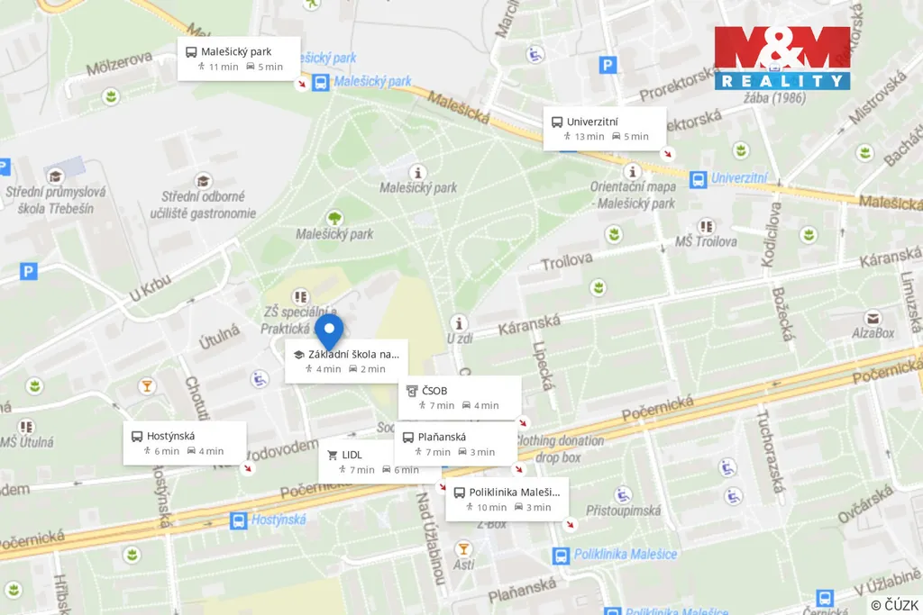 Pronájem bytu 1+1 (užitná plocha 35 m²) v klidné části Malešic, Skřivanská ulice, Praha 10. Byt se nachází ve 3. nadzemním podlaží čtyřpodlažního panelového domu bez výtahu. Dispozice: pokoj, samostatná kuchyně, koupelna s vanou a umyvadlem, samostatné WC. Podlahy: keramická dlažba v koupelně a WC, plovoucí podlaha v pokoji a kuchyni. K bytu náleží sklepní kóje v suterénu. Topení a ohřev vody dálkově; elektřina a plyn se převedou na nájemníka. Výborná dostupnost MHD a kompletní občanská vybavenost. Volné ihned.
