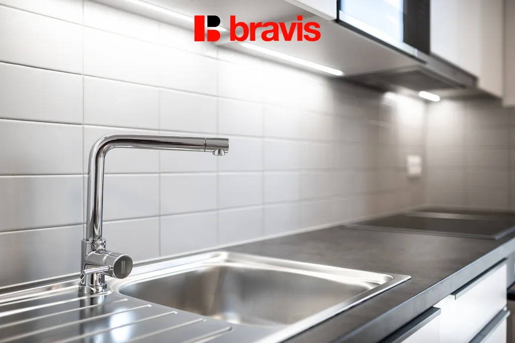 Kuchyně je zařízena kuchyňskou linkou na míru s vestavěnými spotřebiči zn. BOSCH (kombinovaná lednice s mrazícím boxem, myčka, el. trouba, varná deska, digestoř).